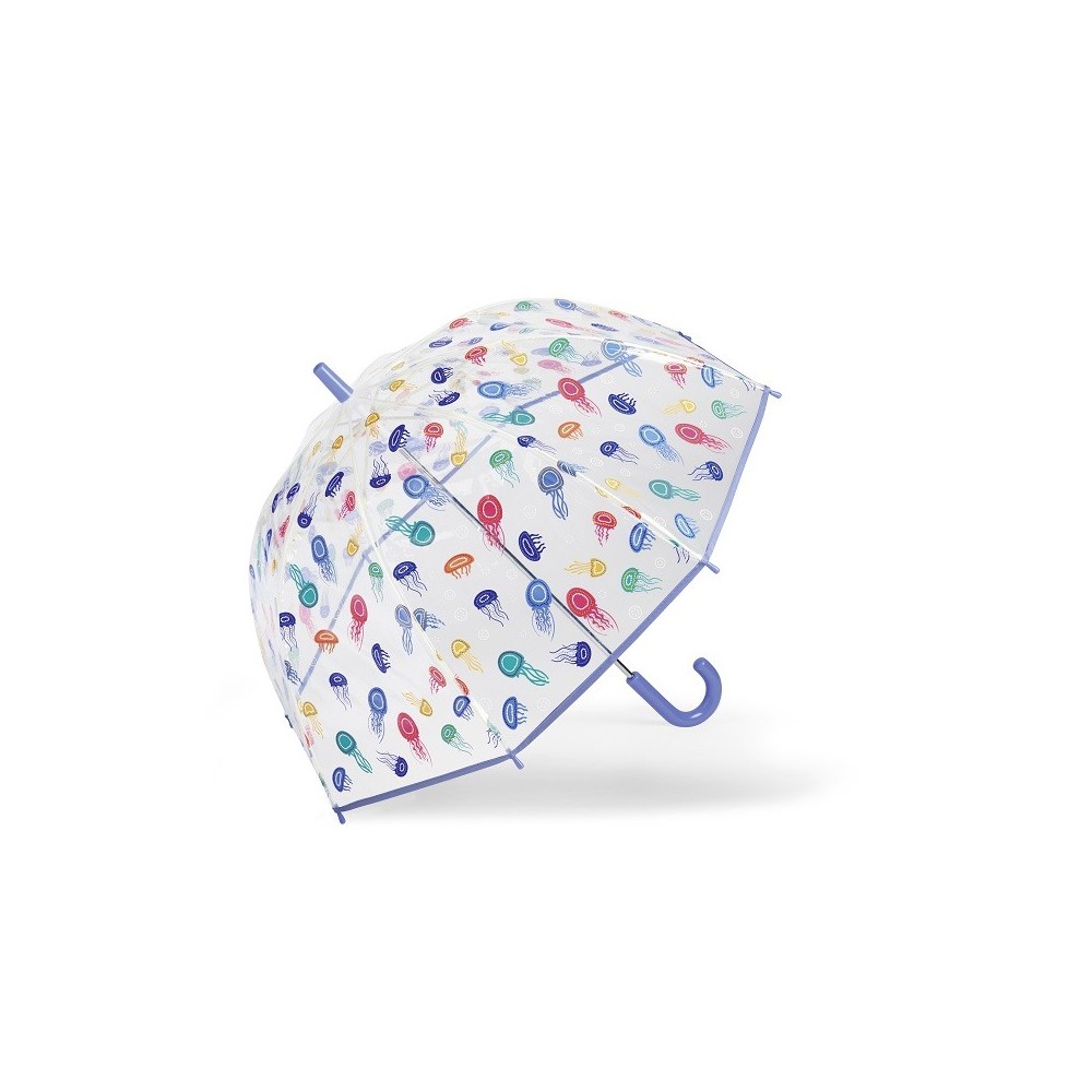Dlouhý dívčí deštník Benetton s barevným potiskem medůza a kopulovitým tvarem.