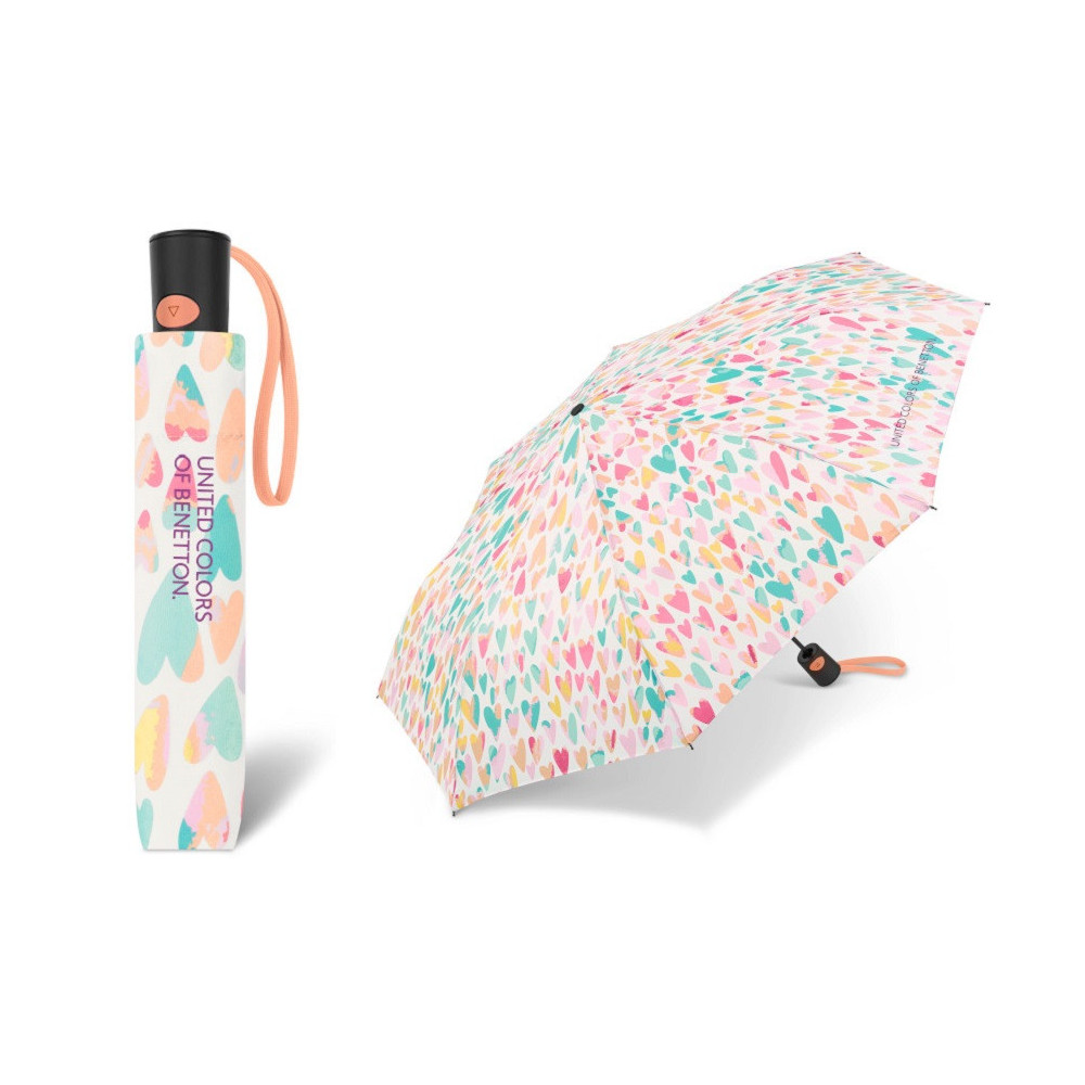 Benetton Mini AC AQUARELL HEARTS , dámský automatický deštník