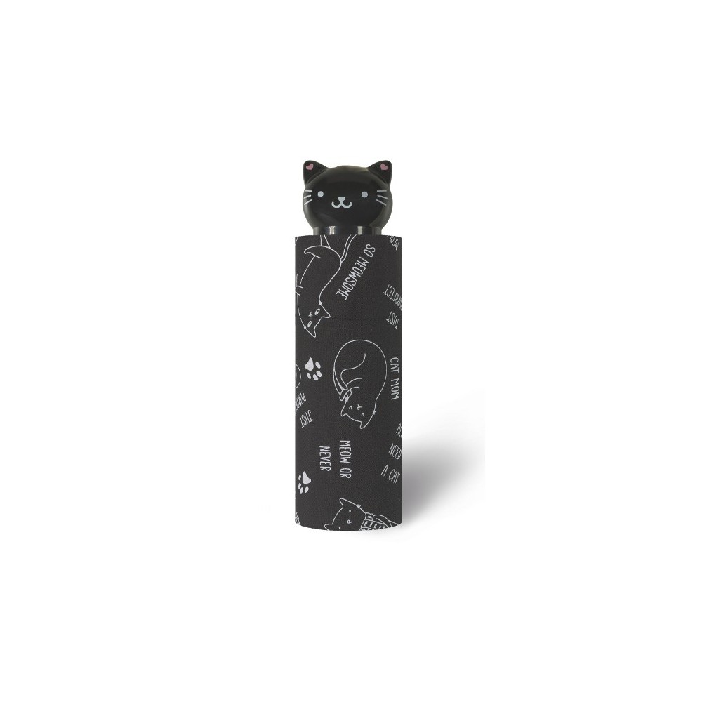 Černý s bílým potiskem koček. Rukojeť ve tvaru kočičí hlavičky