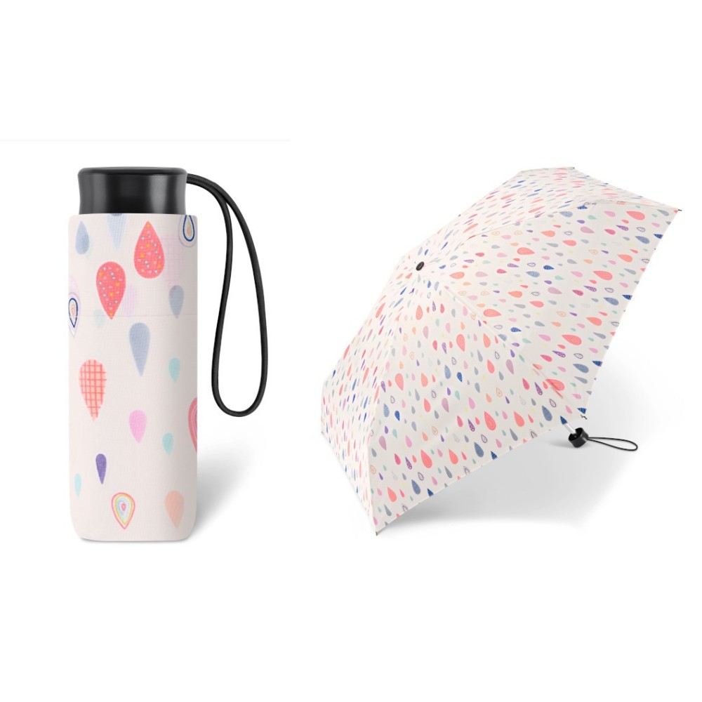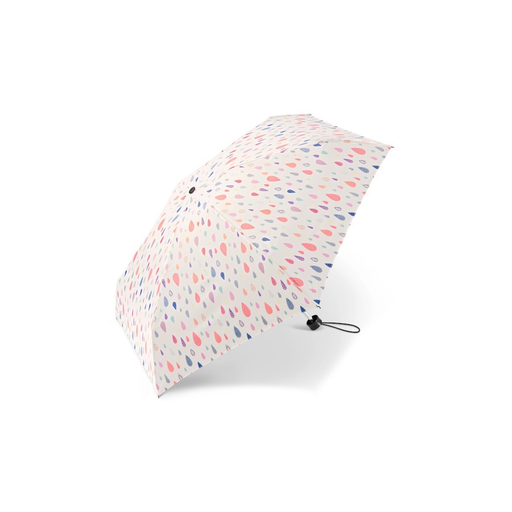 Maličkatý skládací deštník s odlehčenou konstrukcí. v desénu barevné a hravé kapky.