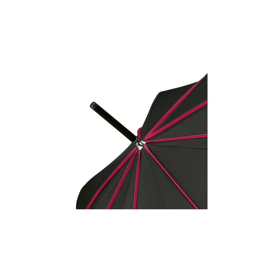 Deštník má ocelovou hůl se zpevněnou konstrukcí z glasfiberu ( velmi pevný plast vyztužený skleněnými vlákny)
