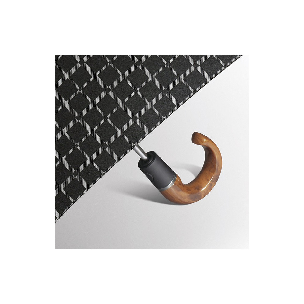 Deštník je automatický s dřevěnou rukojetí a obrovskou střechou.