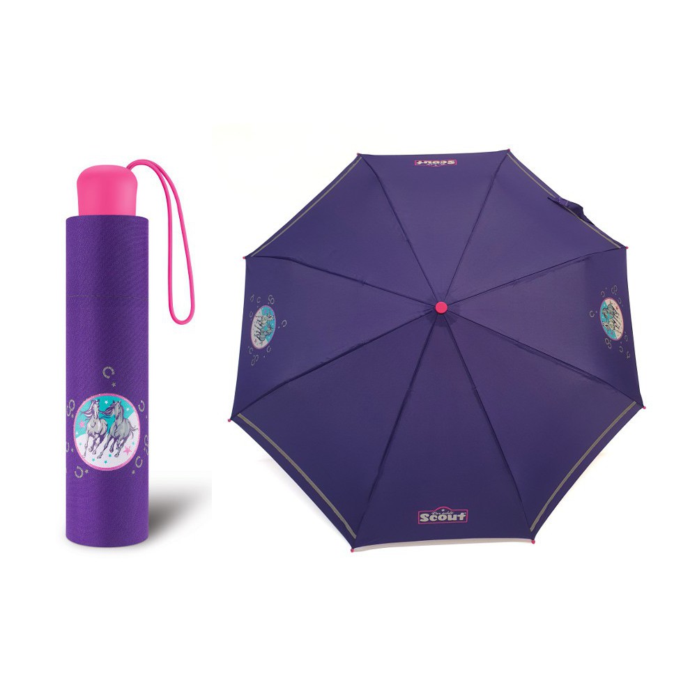 Dětský skládací odlehčený deštník německé značky Scout.Ideální velikost do každé dívčí školní aktovky
